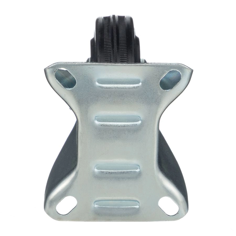 Колесо неповоротное 4002-100, диаметр 100мм., грузоподъемность 70кг. Колеса из черной литой резины, центр из двух гальванизированных дисков из штампованной стали. Роликовый (игольчатый) подшипник расположен в углублении, выдавленном под прессом, и содержит цилиндрические ролики подшипника. Неповоротный кронштейн изготовлен прессованием из листовой стали. Возможно применение на относительно грубых полах складов, заводов, производственных и строительных площадках. Данные колеса можно использовать на неровных поверхностях, во влажной окружающей среде и использования вне помещения. Не рекомендуется применять в среде с органическими растворителями, хлорированными веществами, гидрокарбонатами и минеральными маслами. Температура эксплуатации от -20 до +70С.