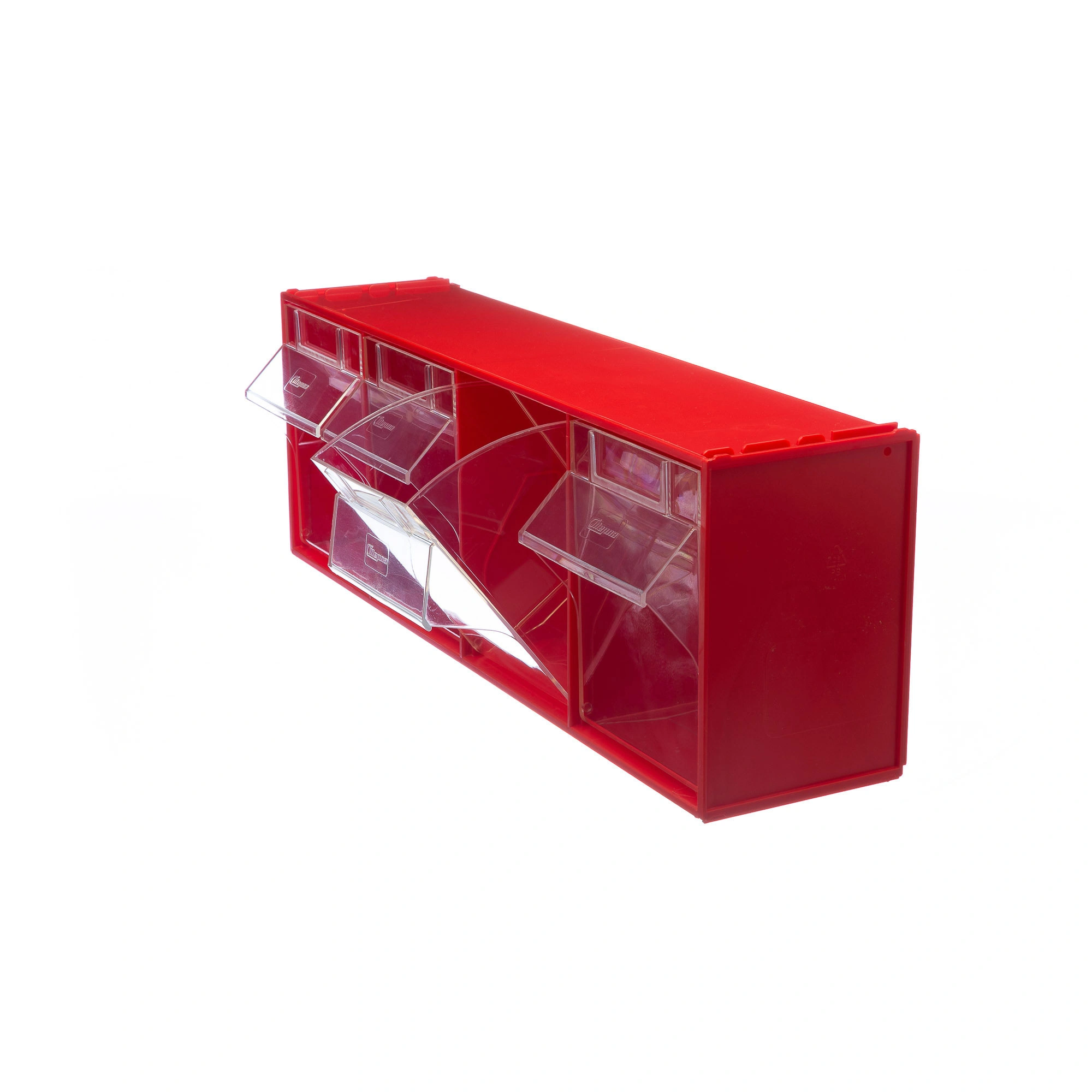 Короб откидной Стелла-техник F-600-4 (600х178х206мм.) 4 ячейки, красный, прозрачный служит для хранения мелкоштучных предметов. Данная система хранения не подвержена случайному опрокидыванию. Откидные стандартные ячейки обеспечивают быстрый доступ к необходимым предметам. В случае необходимости полного высыпания или наполнения внутренние ячейки легко извлекаются. Полезный внутренний размер каждой ячейки 138х127х134мм. Специальный пластик, из которого выполнен короб, выдерживает значительные нагрузки и обладает оптимальной эластичностью. На основе данных коробов можно сформировать многоярусную систему хранения вертикально, в том числе и с коробами меньших размеров, таких как F-600-9, F-600-6 и F-600-5 по принципу пирамиды. Использование в качестве дополнительного элемента специальных металлических рам, позволяет комплекту коробов нести большие нагрузки в напольном, настольном и настенном варианте. Короб данной модели легко можно прикрепить к стене или установить на специальные кронштейны (Артикул: Кронштейны-FOX-750). Обзорность содержимого сквозь прозрачные внутренние ячейки, наличие отсека для информационных бирок, легкое извлечение внутреннего короба для опустошения и наполнения, все это является неоспоримым преимуществом откидных коробов серии F. Температура эксплуатации от -10 до +70С.