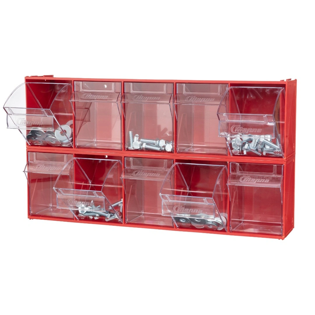 Короб откидной Стелла-техник F-600-5 (600х140х168мм.) 5 ячеек, красный, прозрачный служит для хранения мелкоштучных предметов. Данная система хранения не подвержена случайному опрокидыванию. Откидные стандартные ячейки обеспечивают быстрый доступ к необходимым предметам. В случае необходимости полного высыпания или наполнения внутренние ячейки легко извлекаются. Полезный внутренний размер каждой ячейки 108х98х107мм. Специальный пластик, из которого выполнен короб, выдерживает значительные нагрузки и обладает оптимальной эластичностью. На основе данных коробов можно сформировать многоярусную систему хранения вертикально, в том числе и с коробами других размеров, таких как F-600-9, F-600-6 и F-600-4 по принципу пирамиды. Использование в качестве дополнительного элемента специальных металлических рам, позволяет комплекту коробов нести большие нагрузки в напольном, настольном и настенном варианте. Короб данной модели легко можно прикрепить к стене или установить на специальные кронштейны (Артикул: Кронштейны-FOX-750). Обзорность содержимого сквозь прозрачные внутренние ячейки, наличие отсека для информационных бирок, легкое извлечение внутреннего короба для опустошения и наполнения, все это является неоспоримым преимуществом откидных коробов серии F. Температура эксплуатации от -10 до +70С.