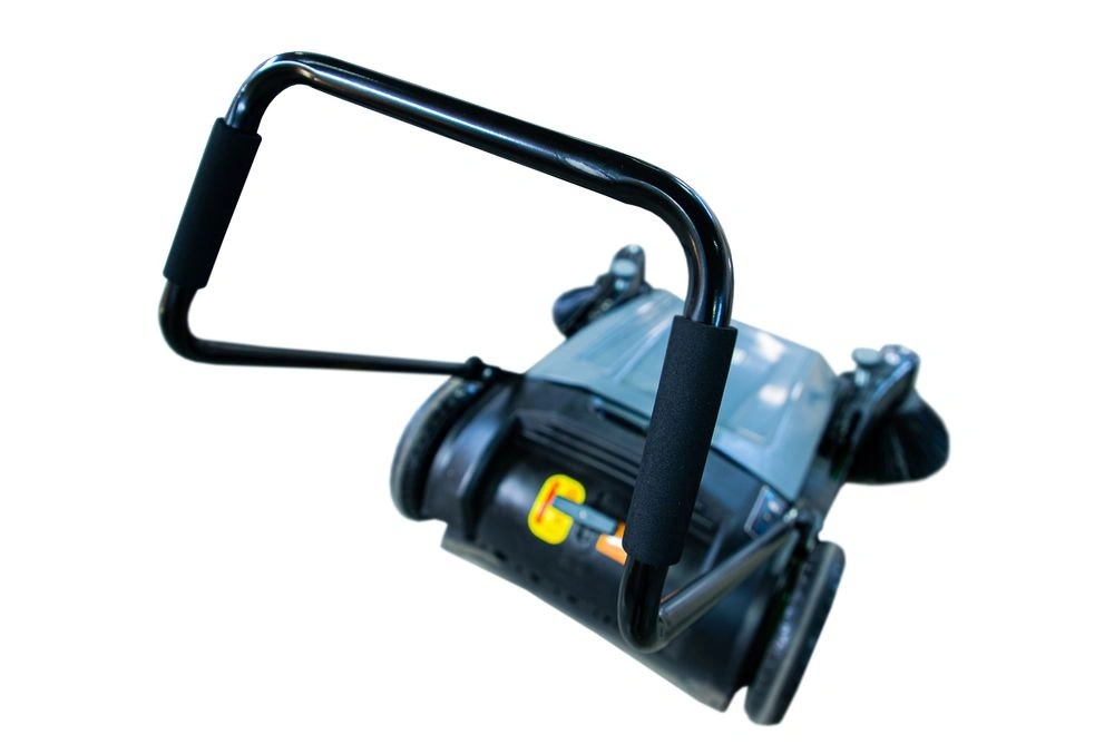 TOR M92 — надежная и производительная подметальная машина с механическим приводом, созданная для эффективной уборки больших площадей как внутри, так и снаружи помещений. Неприхотлива в обслуживании, проста в управлении и не требует электропитания — идеальна для заводов, складов, торговых центров, ферм и других объектов с интенсивным загрязнением. Ширина уборки 92 см, производительность до 2860 м²/час, вместительный контейнер на 55 литров и регулируемая скорость основной щетки обеспечивают высокую эффективность при минимальных усилиях оператора. Где используется? Подходит для уборки производственных цехов, складских помещений, торговых залов, ангаров, гаражей, ферм, парковок, дворовых территорий и других объектов с твердым покрытием. Эффективна как в закрытых помещениях, так и на открытых площадках — обеспечивает чистоту без использования электроэнергии или топлива. Основные преимущества: - Высокая производительность — до 2860 м²/час благодаря ширине уборки 92 см и мощной трехщеточной системе - Три щетки — две боковые убирают мусор вдоль стен и бордюров, основная щетка длиной 48 см собирает отходы в контейнер - Регулируемая скорость основной щетки — позволяет адаптировать работу под тип поверхности и уровень загрязнения - Вместительный контейнер — объем 55 литров снижает частоту опустошения при уборке больших площадей - Эргономичная рукоять — регулируется по высоте и углу наклона, складывается для удобного хранения и транспортировки - Удобство перемещения — складная конструкция и дополнительная ручка на корпусе позволяют легко перевозить машину в багажнике или на тележке - Надежность и долговечность — механический привод не требует технического обслуживания, устойчив к перегрузкам и работает в любых погодных условиях Комплектующие (при необходимости замены): — Набор боковых щеток 350 мм для подметальных машин M92 (2 шт) — артикул 1025549 — Основная щетка 480 мм для подметальных машин M92 — артикул 1025553