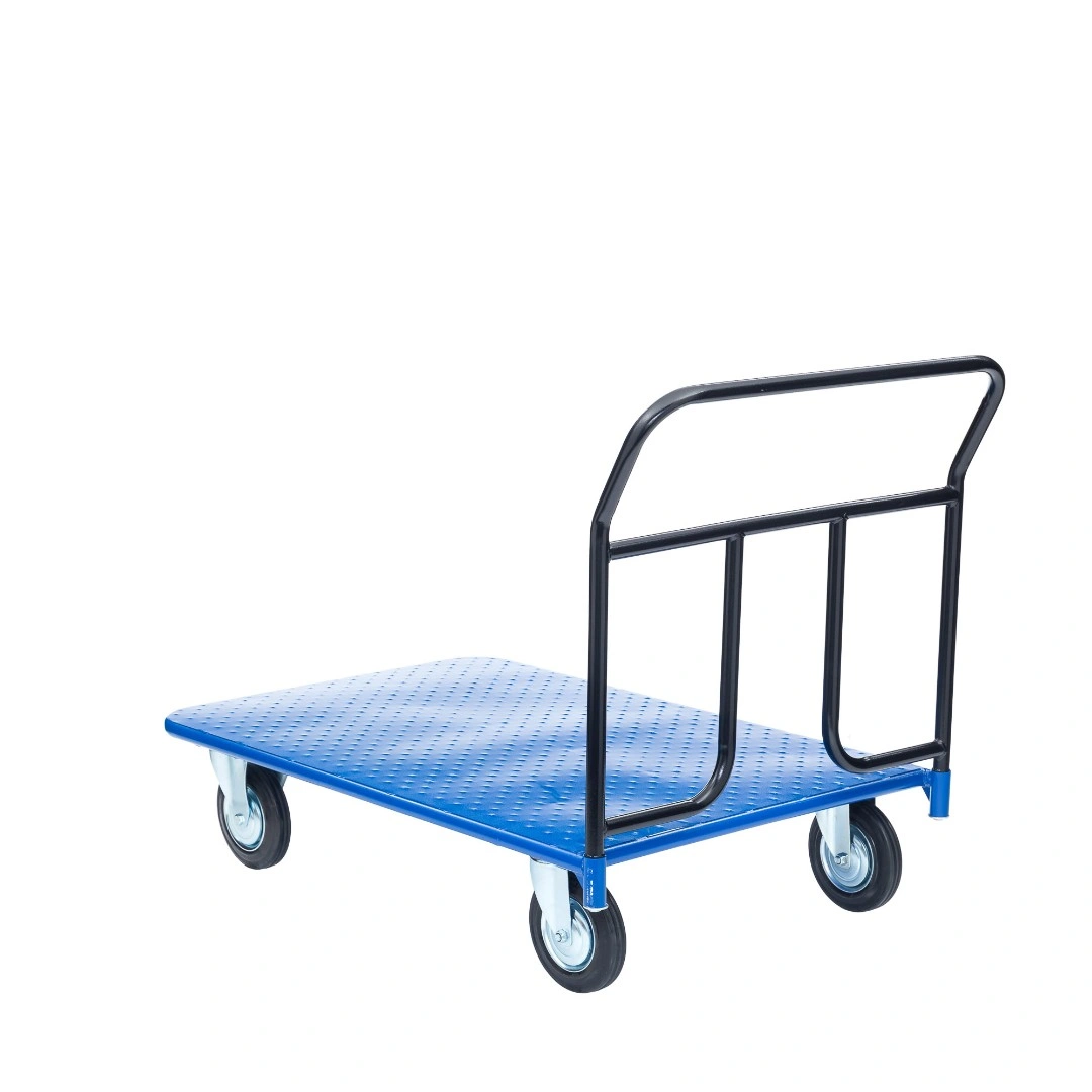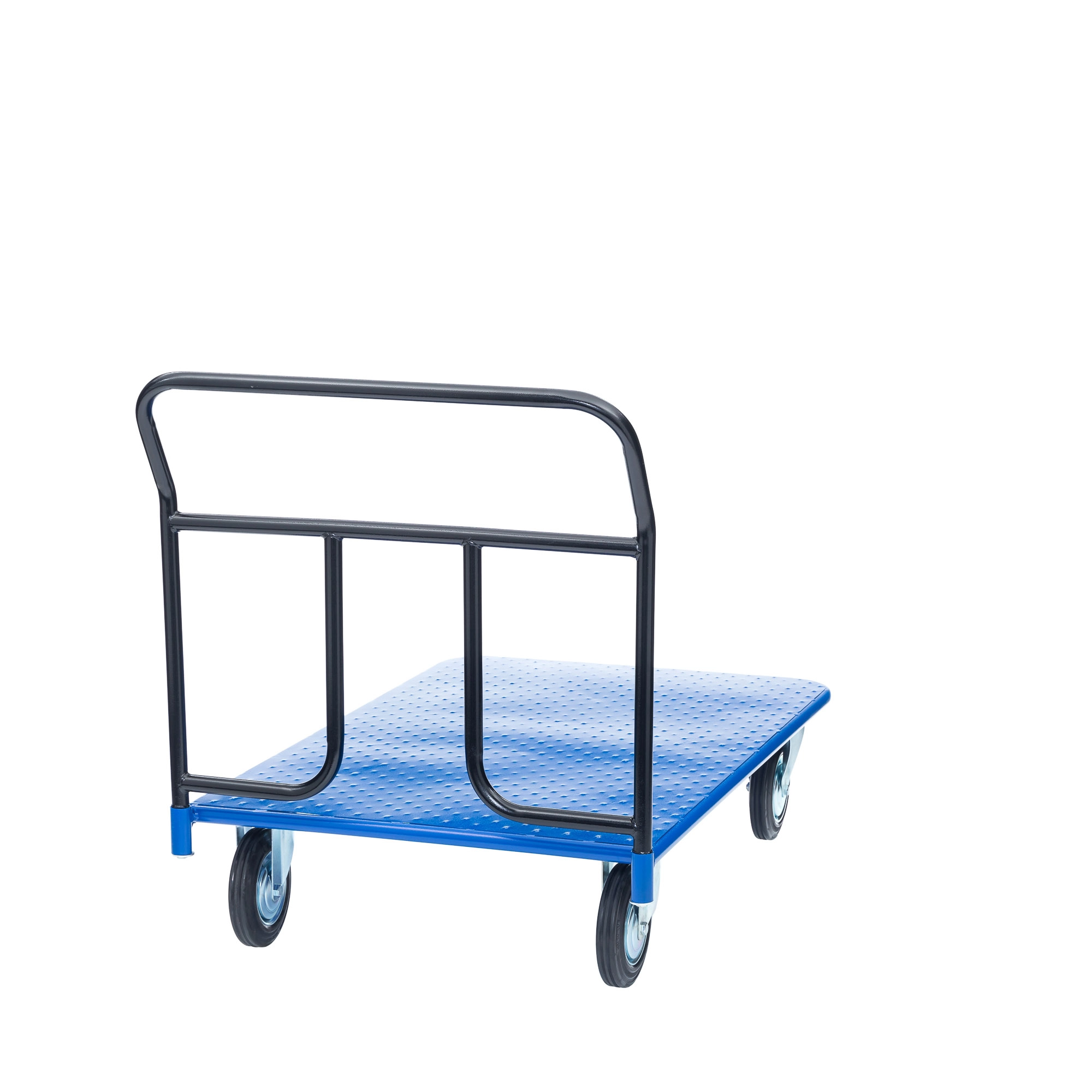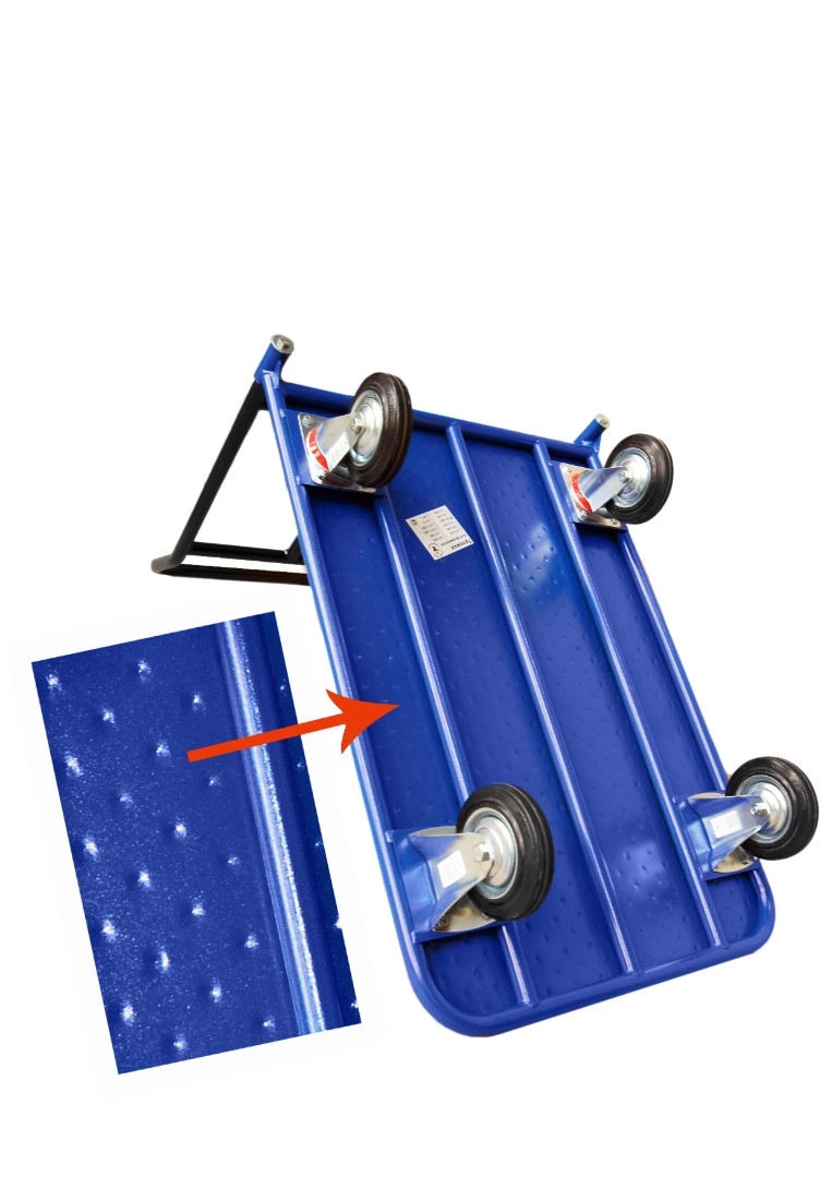 Платформенная 4-х колесная тележка КП-450-200-И используется для перемещения различных грузов в складских помещениях. Ручка крепится к платформе болтами, для компактного хранения можно снять, высота ручки 750мм. Платформа имеет уникальную рельефную, полимерную, противоскользящую поверхность, размером 700х1250мм. Цвет - синий, шагрень. Тележка комплектуется: метизами для крепления, двумя поворотными и двумя неповоротными промышленными колесами, диаметром 200мм., из черной стандартной резины, от всемирно известного, ведущего итальянского производителя Tellure Rota. Грузоподъемность до 690кг.