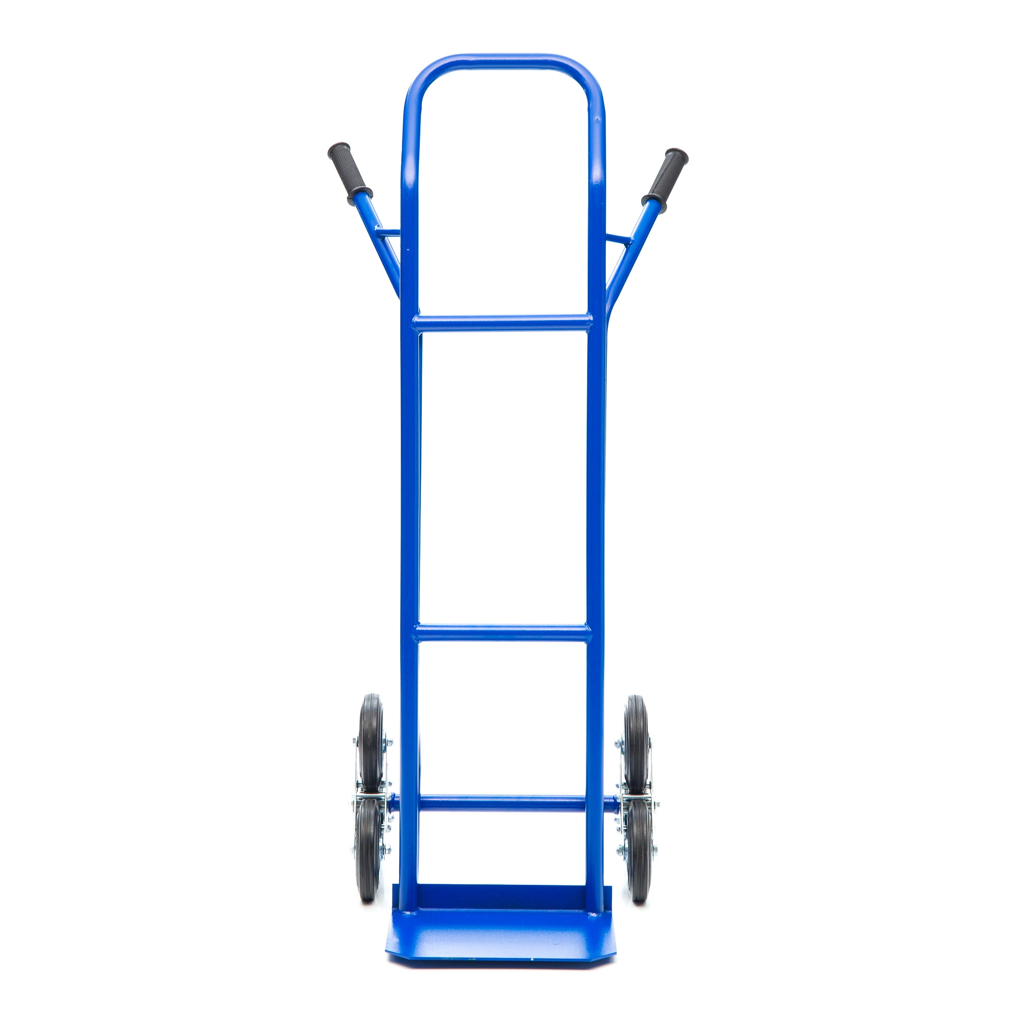Грузовая специализированная лестничная тележка КС-150 имеет уникальную колесную базу, что позволяет перемещать по лестнице и на ровных плоскостях, груз весом до 150кг. Небольшие габариты и малый вес устройства облегчают его транспортировку. Окрашенный металлический корпус не восприимчив к коррозии и устойчив к нагрузкам. Вес тележки 18.8кг., высота ручки 1350мм., размер платформы 350х240мм., габариты 1350х550мм. Рукоятки имеют удобную для захвата форму и покрыты резиной, предотвращающей соскальзывание рук. Диаметр каждого из 6 колес-150мм. Большая опорная платформа служит для предотвращения падения груза с тележки.